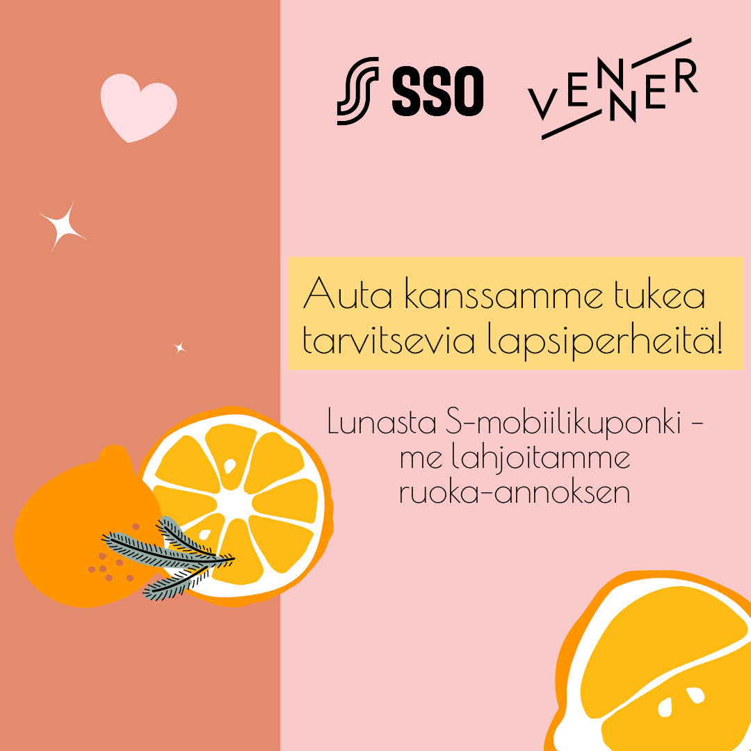 – Olemme Vennerillä erittäin kiitollisia SSO:n kanssa jatkuneesta pitkäaikaisesta yhteistyöstä. Yhdessä pystymme joka vuosi tuomaan joulun lämpöä ja tukemaan perheitä konkreettisesti ravitsevalla ruoalla ja yhteisillä ruokahetkillä. On sydäntä lämmittävää nähdä, miten yhteistyömme välittää tukea ja toivoa perheille aikana, jolloin sillä on erityisen suuri merkitys, Emilia Järvinen Venneriltä toteaa.