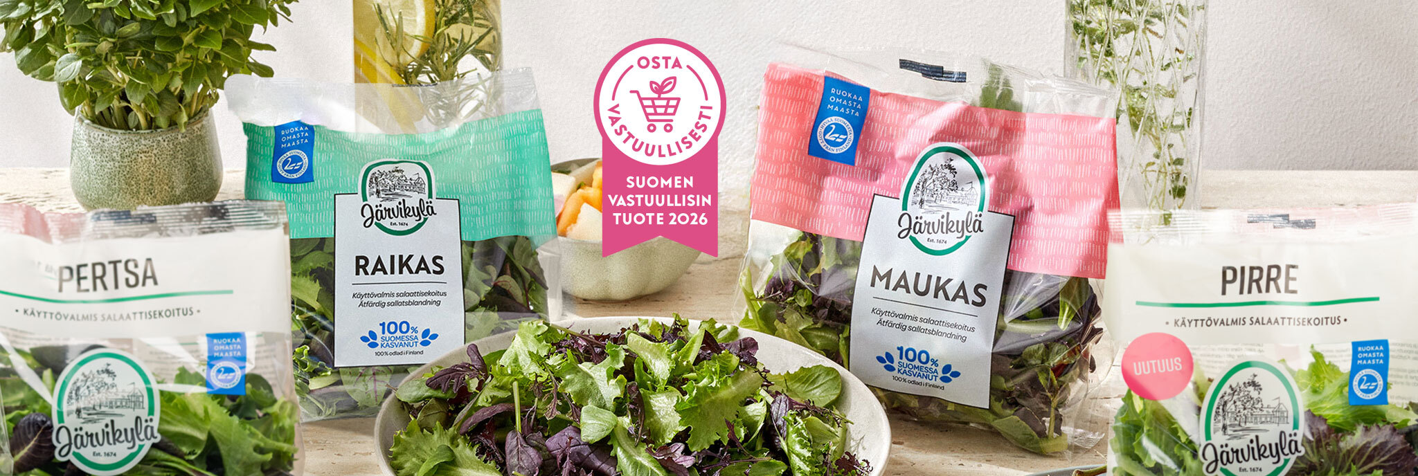 Järvikylän Pirre, Pertsa, Raikas ja Maukas ovat käyttövalmiita suomalaisia salaattisekoituksia, jotka kasvavat energiatehokkaasti uusiutuvalla energialla ja hukkalämmöllä kerrosviljelylaitoksella Savossa. Riippumaton Vastuullisuuspaneeli valitsi salaattisekoitukset voittajaksi Suomen vastuullisin tuote -kilpailussa, joka kamppailee viherpesua vastaan nostamalla parrasvaloihin kestävää elämäntapaa tukevia tuotteita ja palveluita*.
